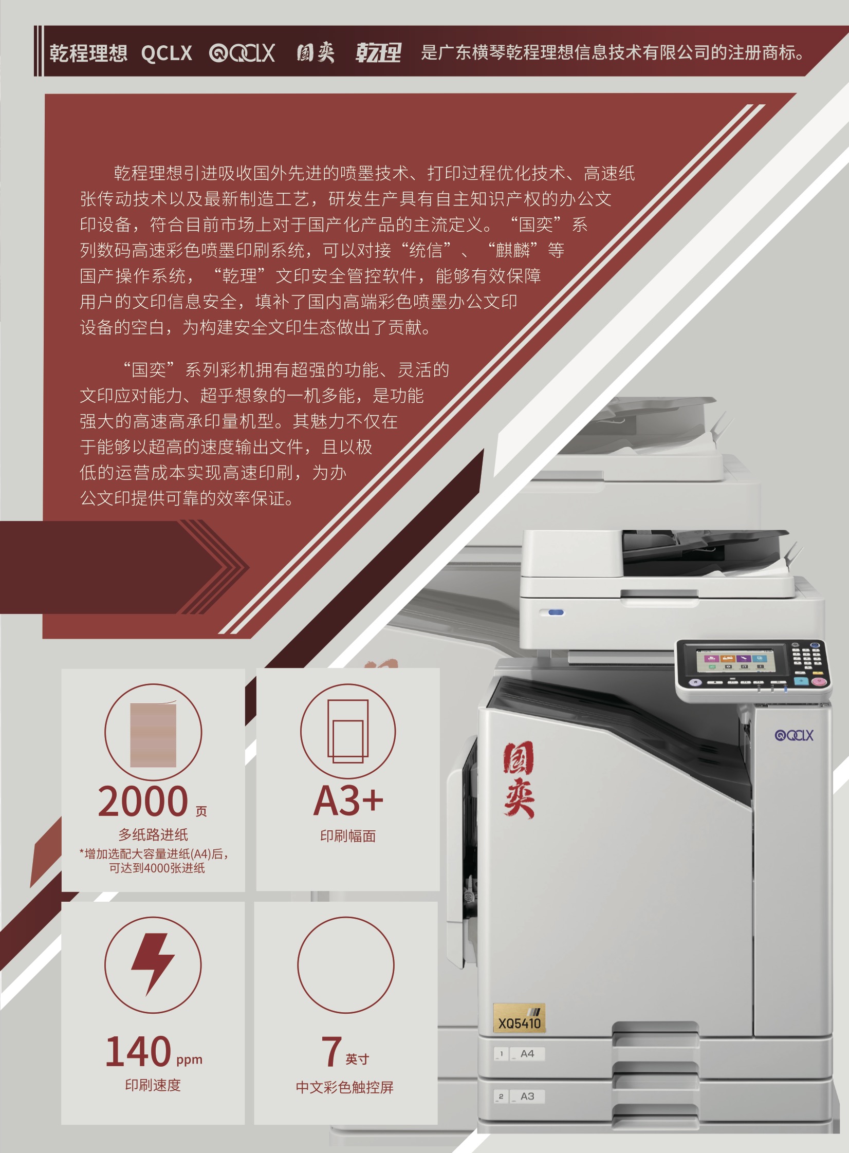 国奕 XQ5410主机+扫描 140ppm/黑色单色印刷